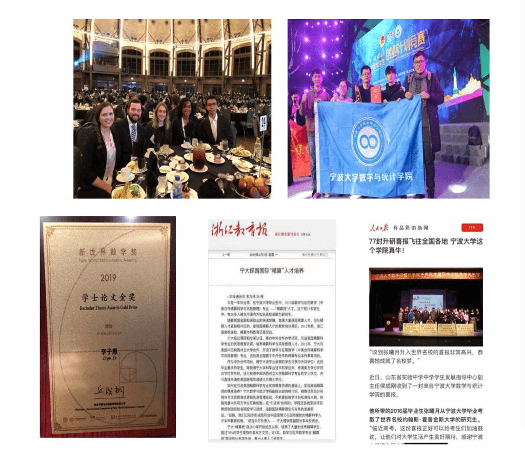 The school strengthened the students’ sense of honor by organizing the display of postgraduate recommendation students, the appraisal of outstanding students, the experience sharing session of postgraduate entrance examination and postgraduate recommendation students, the excellent dormitory appraisal, and the demonstration of class style of study. And release the Management Measures for Innovation and Entrepreneurship of School of Mathematics and Statistics, NBU and Awarding Administrative Measures for Postgraduate Entrance Examinations of the School of Mathematics and Statistics of NBU. Teachers and students who performed well will be reward 150,000 yuan or 23,300 dollars in the following projects, like discipline competitions, thesis publication, patent application, postgraduate entrance examinations, etc. After recent years of hard work, mathematics students have won gold medals in the National Internet + Innovation and Entrepreneurship Competition and Youth Entrepreneurship Competition, and have repeatedly won good grades in the Sino-US University Students Mathematical Modeling