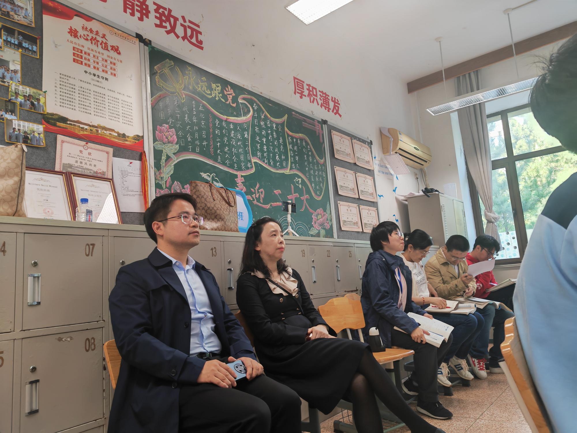 首先,徐老师一行对各位同学的办公环境、适应情况和实习进展表示了关心。之后,徐老师与宁波二中副校长、实习带教老师亲切交流,代表学院对宁波二中为我院教育实习、师范认证等工作提供的支持表示感谢,并逐一了解了实习学生的工作表现。宁波二中对我院学子给予了充分肯定,称赞同学们踏实努力、认真负责,具备了成为一名好老师的潜质。最后,徐老师一行走进课堂,听取了由实习学生主讲的一堂数学课。