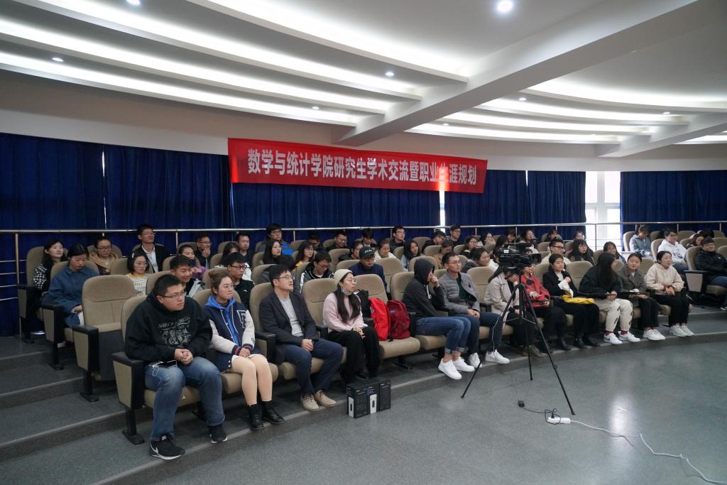 在9号楼116报告厅举办研究生学术交流暨职业生涯规划沙龙活动。活动特邀数学学院院长屈长征、党委书记俞金波作为嘉宾与现场70多名研究生交流。活动由副院长曹炜主持。