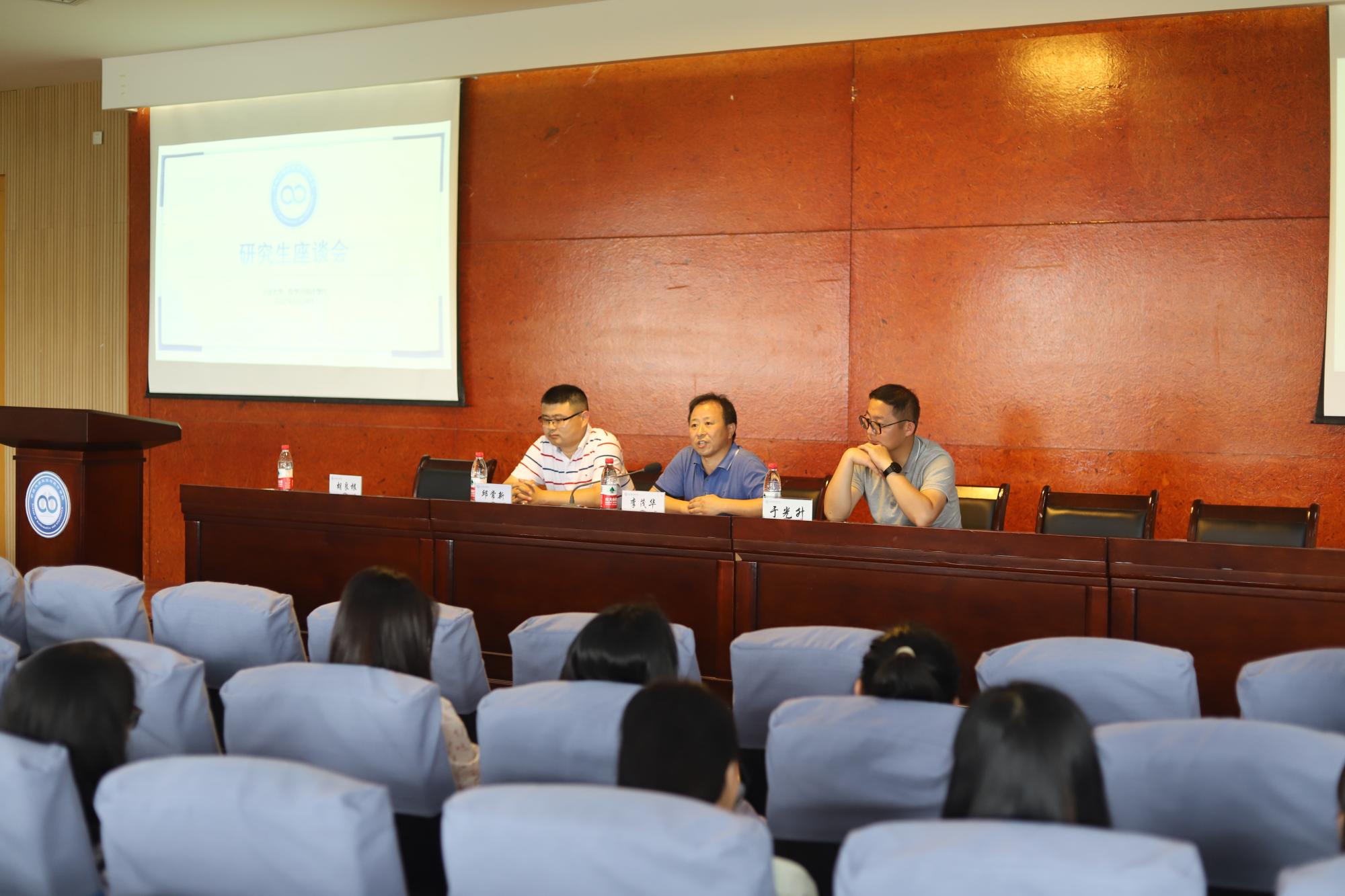 在研二学生座谈会上,李茂华老师鼓励学生们申请读博,就读博形式、读博准备做了详细介绍,并提醒同学们以规范毕业论文为契机,打好学业基础。邱常新老师分享了他海外读博及多年潜心科研的经验,就如何申请海外博士,规范论文写作等方面提出了许多指导性建议。班主任于光升老师则从日常管理出发,告诫同学们暑期临近,要增强安全意识,防范诈骗风险。