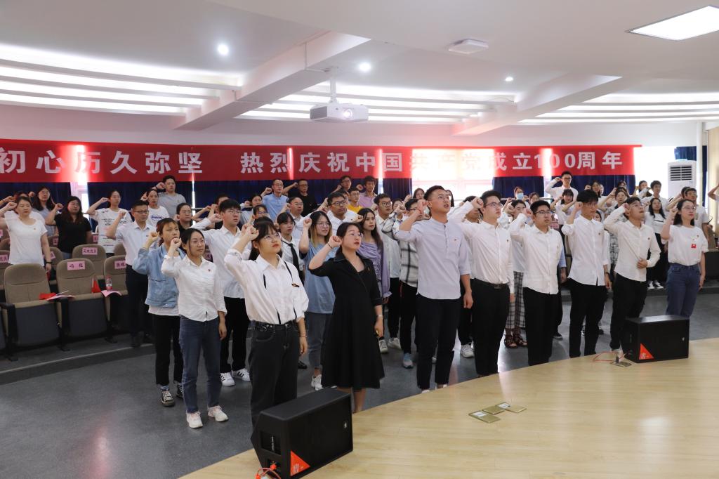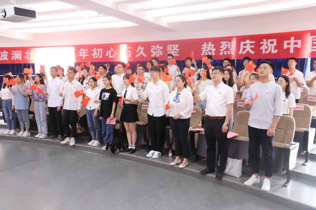 庆祝中国共产党成立100周年纪念活动在9号楼一楼报告厅隆重举办。学院党委书记俞金波,党委委员、副院长胡良根,党委委员李建峰出席会议。大会由党委委员、团委书记张宾主持。学院各党支部书记、全体师生党员等100人参加。