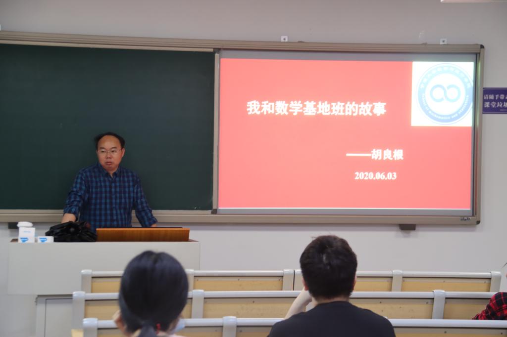 首先胡良根老师讲述他自己历年来与数学基地班的点点滴滴,见证了数基班学子的成长成才。其后针对2017级数基班学生2021年考研,从“我未来的规划”,“我该怎么做”,“我能行”等角度,讲述了如何抉择好高校、专业以及复试策略等,引导同学们对自己的复试时间进行合理的规划。同时,胡老师以16级考研成功的学长学姐作为榜样鼓励大家认真准备,积极应对,相信2021年考研肯定会有大收获。