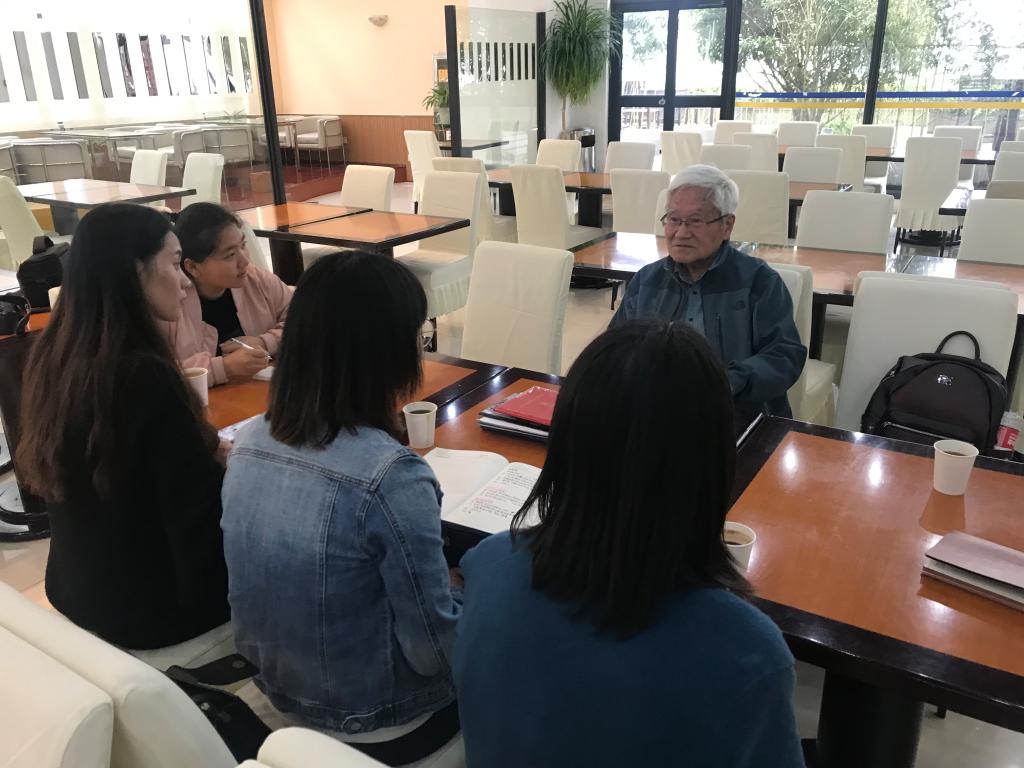 我校首届数学系主任85岁的欧阳光中老先生在复旦大学热情地招待了来访师生,双方进行了亲切座谈。到访师生向欧阳先生汇报数学获批一级博士点、数学学科评估排名的可喜成绩;接着,欧阳光中与来访师生通过翻阅援建宁大老照片的方式共话当年的援建故事,寄语宁大青年学子要奉献、实干、创新,要在社会主义的共性制约下追求个性。