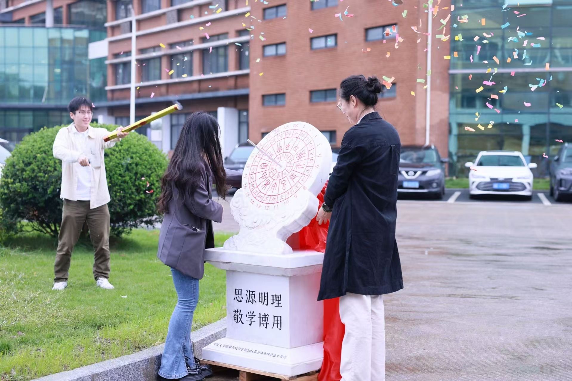 10月26日上午,秋高气爽,丹桂飘香,在举校欢庆的美好时节,2024届数学与应用数学(师范)的学子带着对母校的满腔热忱,在包玉书9号楼前隆重举行日晷捐赠仪式。学院党委书记霍妍,党委副书记姜萍,校友会会长严正等受邀参加了捐赠仪式。