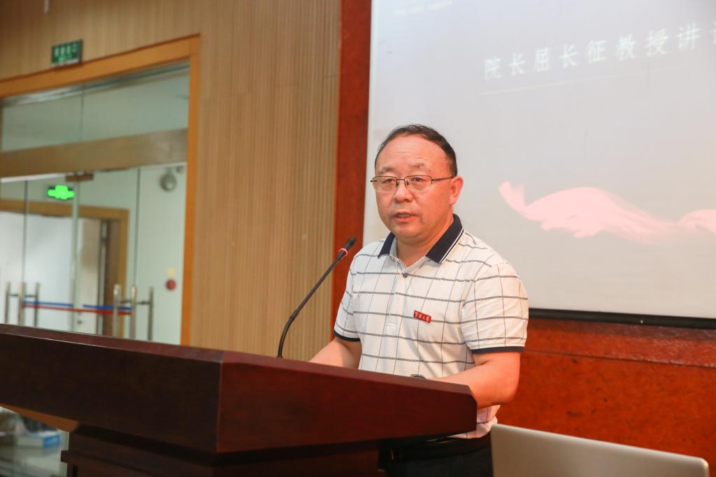 新生见面会在新生的一曲《天空之城》的小提琴和口琴协奏中拉开序幕,接着学院领导为现场新生佩戴了特别定制的院徽胸牌。接着学院特聘院长屈长征为现场新生致辞,他先介绍了学院的发展沿革和师资情况,勉励在场新生,一定要树立远大志向,提前规划、学好专业、创新思维、加强锻炼。