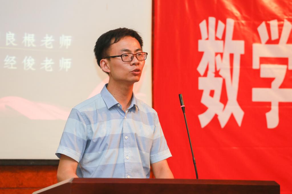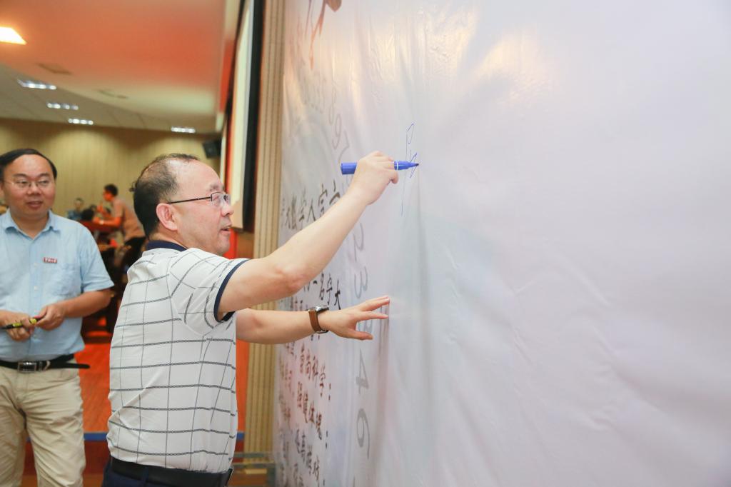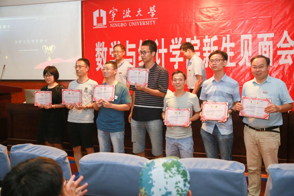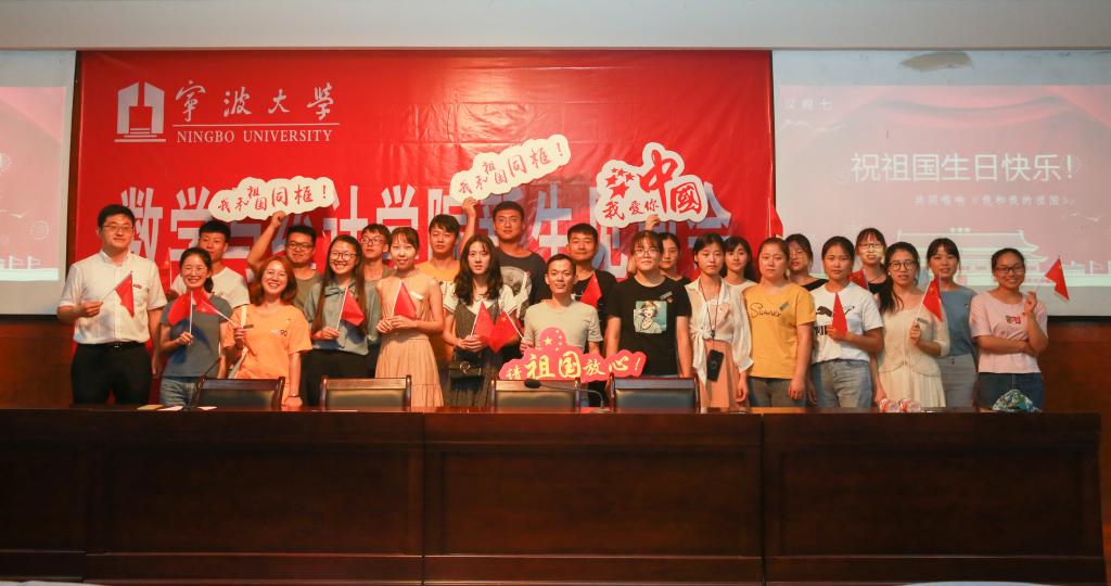 教师代表胡良根老师向新生们倡议“放眼于未来,我们应该思考在无穷大的分母中如何当好分子,为祖国的繁荣昌盛奉献自己的才华。”班主任代表包经俊、新老师代表纷纷发言;今年适逢新中国成立70周年,现场一首《我和我的祖国》点燃了全场师生的爱国情。红色国旗的海洋里,曹炜老师带领下,新生们共同进行了《数学人宣言》共同宣誓,勉励新生要刻苦钻研,强健体魄,心怀感恩,立志报国,做一个为中华崛起而好好读书的宁大青年!新生典礼结束后,师生纷纷在签名墙上签名,并表达了“追求真理,崇尚科学,为中华崛起好好学习,为人类发展勇敢探索”的决心与信念。