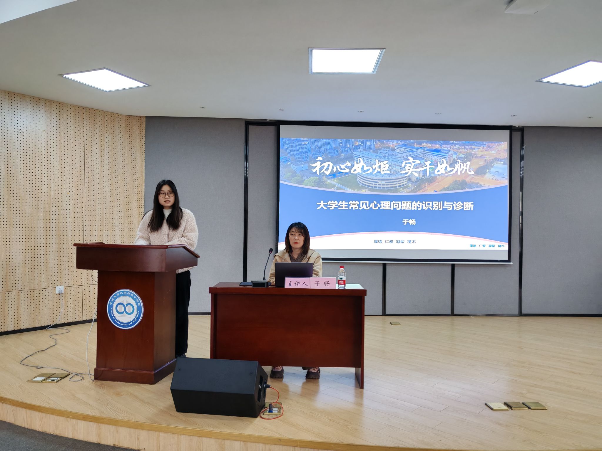 在讲座中,于畅医生详细介绍了大学生常见的心理问题,包括抑郁症、焦虑症和强迫症等,并逐一进行了深入分析。