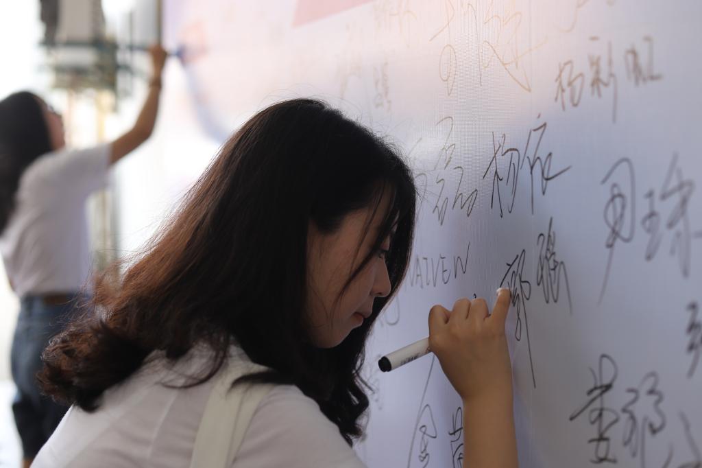 会议结束之后,全体2020届毕业生共同在“廉洁从业倡议书”签名墙处签名,做出廉洁承诺。