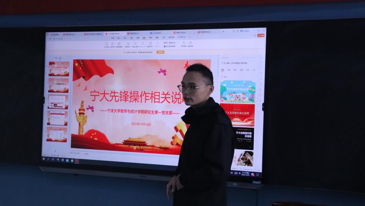 随后,陈老师对“宁大先锋”系统核心功能进行了详细讲解,包括党员基本信息管理、党员档案完善、党员思想汇报与学习记录管理、发展党员流程节点填报等操作内容,并现场模拟典型填报场景与常见问题处理方式,强调党员数字档案的重要性,明确各类信息填报规范与审查要求。