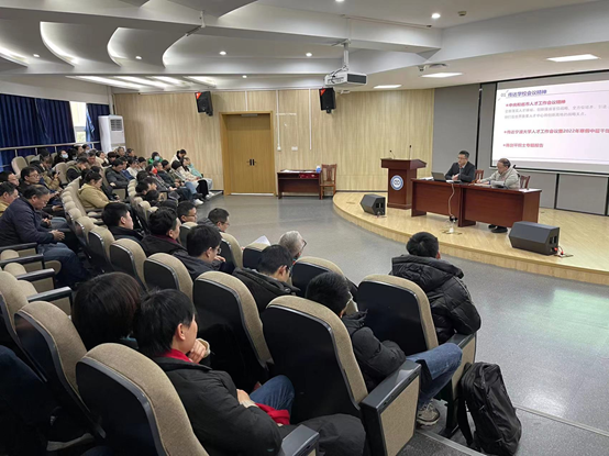 2022年2月18日,我院在113报告厅召开2022年第一次全院大会。会议由院党委书记俞金波主持,学院70余名教职工参加本次会议。