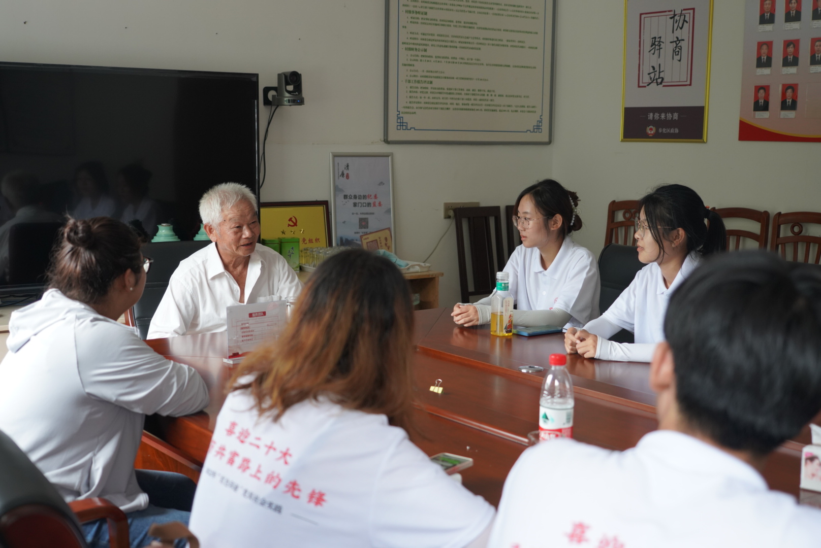 为了这次在村民中宣讲科普共同富裕精神,大家与壶潭村村委进行了面对面交流,深入了解了壶潭村对未来如何实现共同富裕的构思与规划。全村人民将共同努力,充分利用村庄特色资源,坚持红绿发展模式,不仅要传承革命红色基因,更要坚持生态绿色发展,构建富裕文明的美丽乡村。队员们也对其中的具体内容提出意见,用自己的专业知识助力壶潭村的乡村振兴与绿色发展。