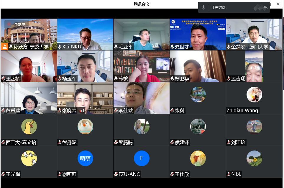 等高校,包含国际数学化学科学院院士、国家自然科学基金杰出青年项目获得者、国家自然科学基金优秀青年项目获得者在内的120多位知名专家学者及研究生参加了此次线上会议。会议主要围绕结构图论、极值图论、代数图论、算法等领域展开交流讨论。