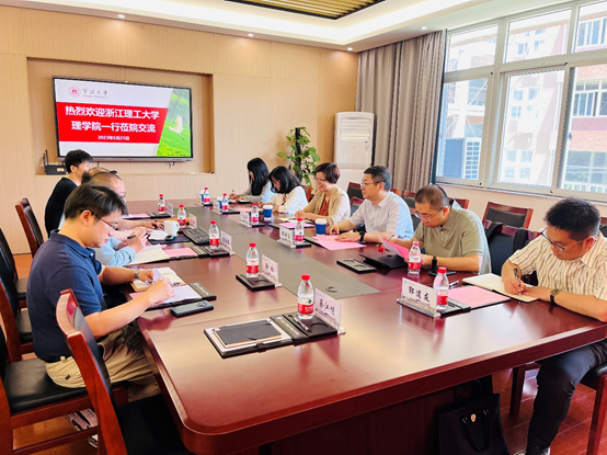 会上,屈长征对浙江理工大学理学院一行人的到来表示欢迎。双方分别就队伍建设、科学研究、专业建设、本科生及研究生培养的宝贵经验进行交流学习,同时就数学学科建设面临的困难,如如何拓宽横向项目等问题进行深入探讨。