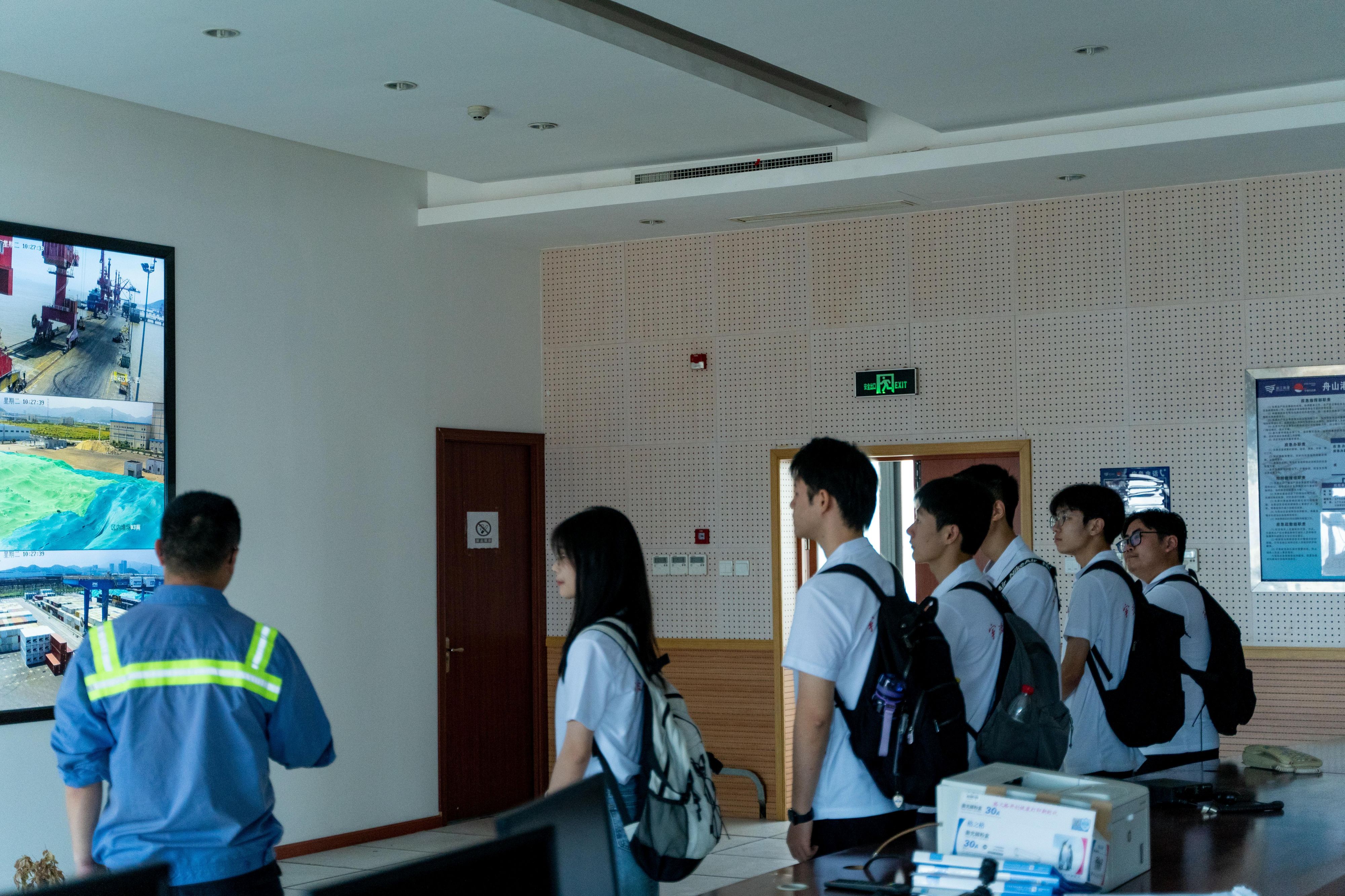 校友李佳骏的陪同下前往码头进行近距离参观,在切身领略港口规模及设施运行后,李佳骏校友向大家介绍了舟山港近些年来遇到的挑战,让大家深刻感受到舟山港的飞速发展离不开习总书记的谋篇布局,离不开舟山港工作人员们肯吃苦、肯奋斗的时代精神。