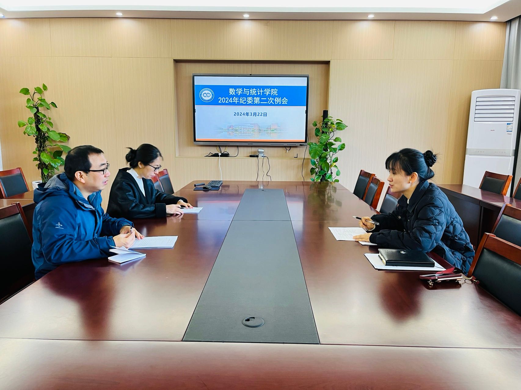 与会成员就2024年学院纪委工作计划及纪委如何协助党委细化落实校党委的巡察反馈意见展开了讨论,同时,还就如何充分发挥学院纪委在师德师风建设、职称评聘、人才引进、评奖评优等具体工作中的作用,有效防范和化解学院发展过程中各种风险挑战等问题进行了深入探讨。姜萍强调,纪委工作责任重大,我们要坚持问题导向,协助学院党委扎实推进全面从严治党,持续加强党风廉政建设,为推进“清廉数院”建设、涵养风清气正的政治生态、推动学院事业发展提供坚强保障。